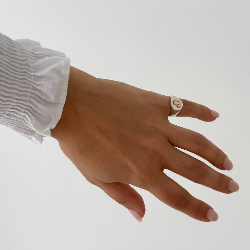 Anel em prata de lei com aplicações em ouro de 9k