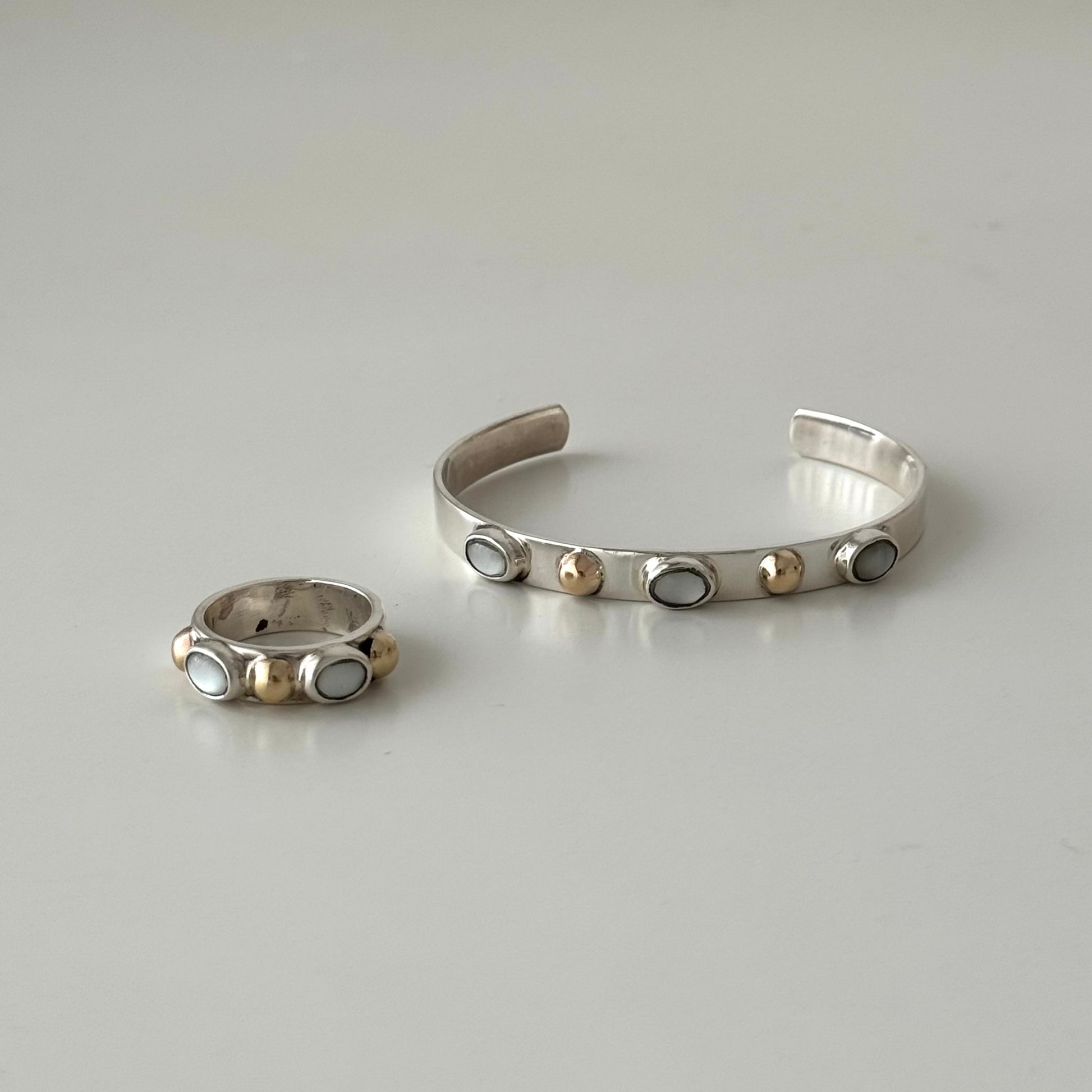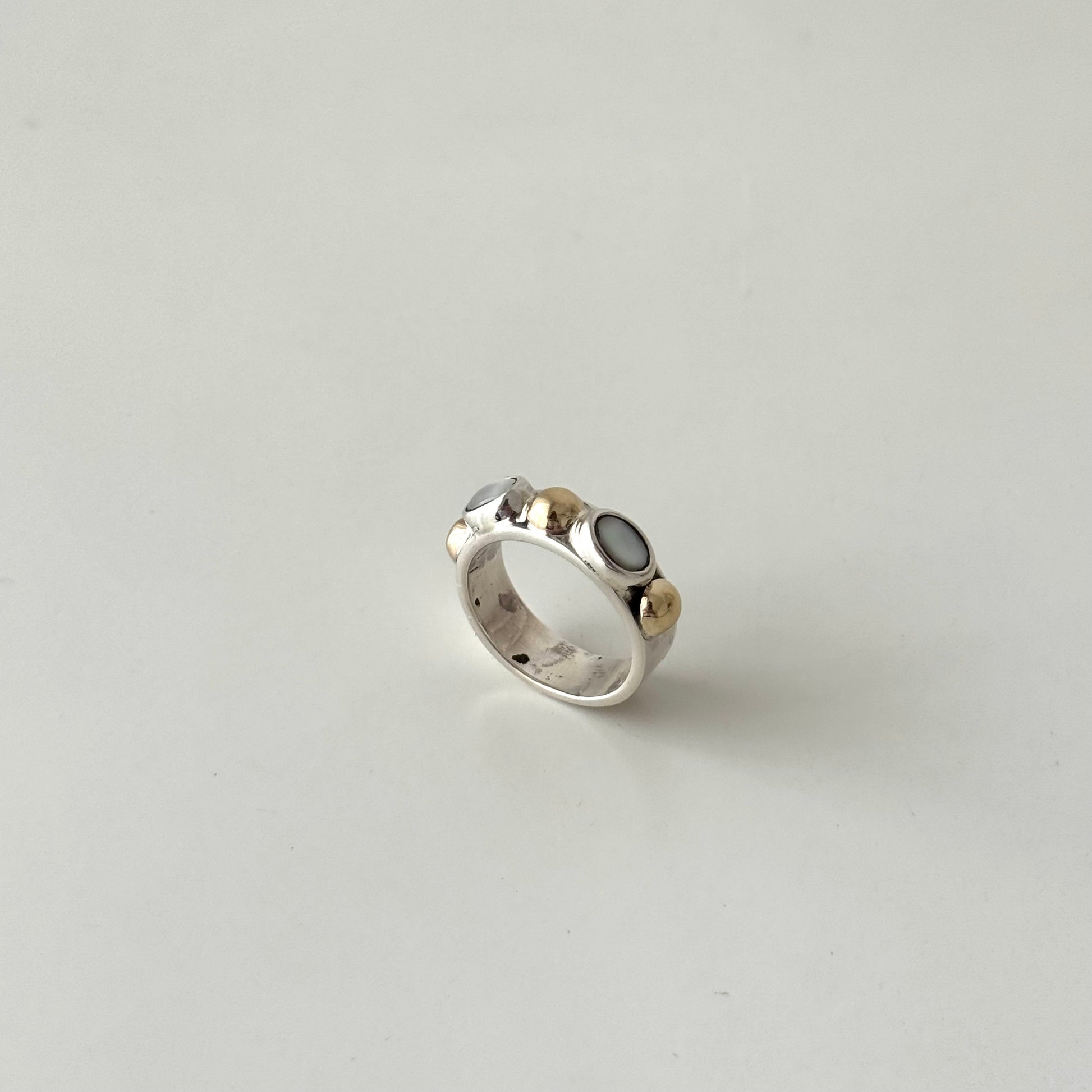 Anel em prata de lei com aplicações em ouro de 9k