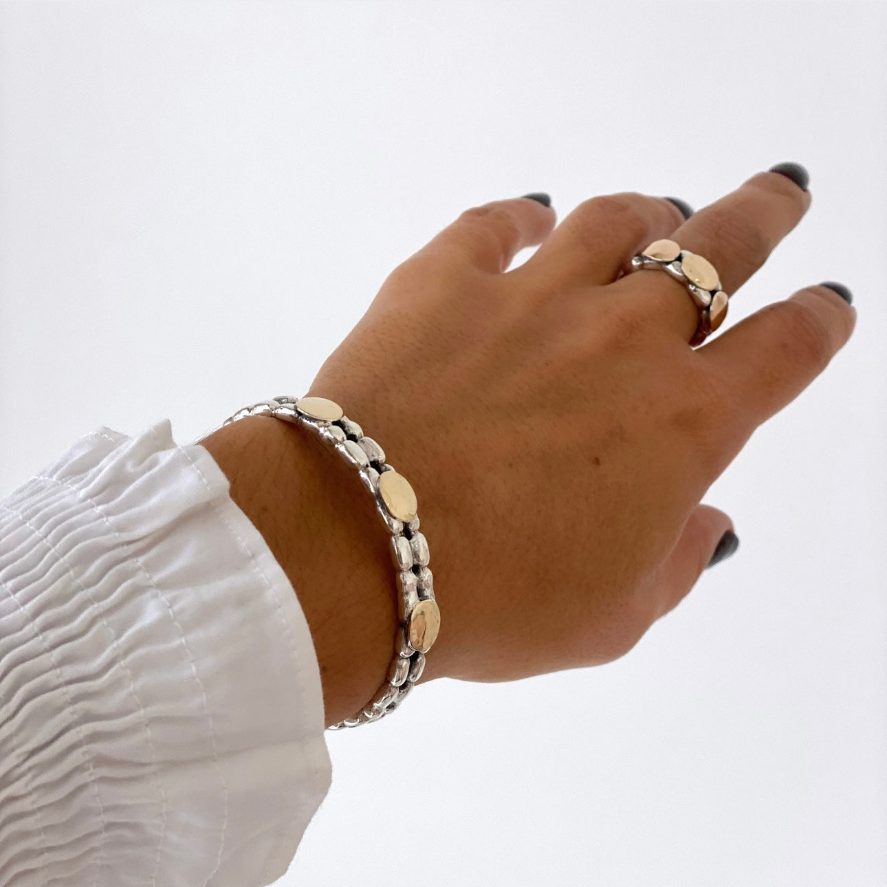 Escrava em prata de lei com aplicações em ouro de 9k